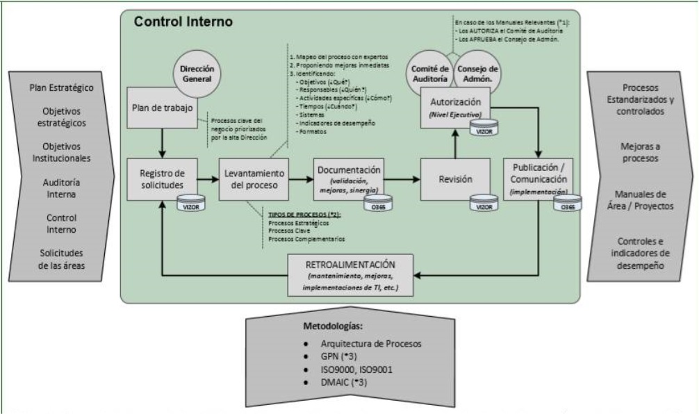 Control Interno representa un Plan Integral de Organización que involucra métodos y procedimientos que debidamente entrelazados son aprobados y adoptados por las organizaciones a efecto de salvaguardar su patrimonio, obtener información oportuna veraz y confiable y alentar la eficiencia, eficacia, calidad y excelencia de las operaciones, así como promover la observancia a los lineamientos administrativos establecidos.