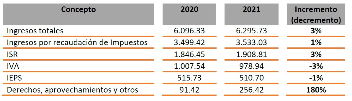 En septiembre de 2020 el Ejecutivo Federal por medio del Secretario de Hacienda y Crédito Público (SCHP), presentó la propuesta del Paquete Económico para el ejercicio 2021 conformado por los Criterios Generales de Política Económica, la Ley de Ingresos de la Federación (LIF), las reformas a las Leyes del Impuesto sobre la Renta (ISR), Impuesto al Valor Agregado (IVA), Impuesto Especial sobre Producción y Servicios (IEPS), el Código Fiscal de la Federación (CFF) y la Ley Federal de Derechos (LFD), así como el Presupuesto de Egresos de la Federación.