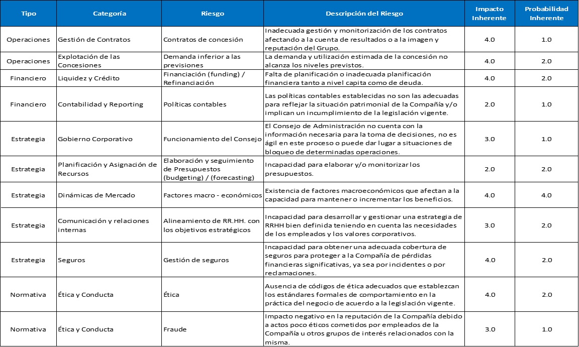 • La identificación, la administración, el control y la revelación de los riesgos a que está sujeta la sociedad.
